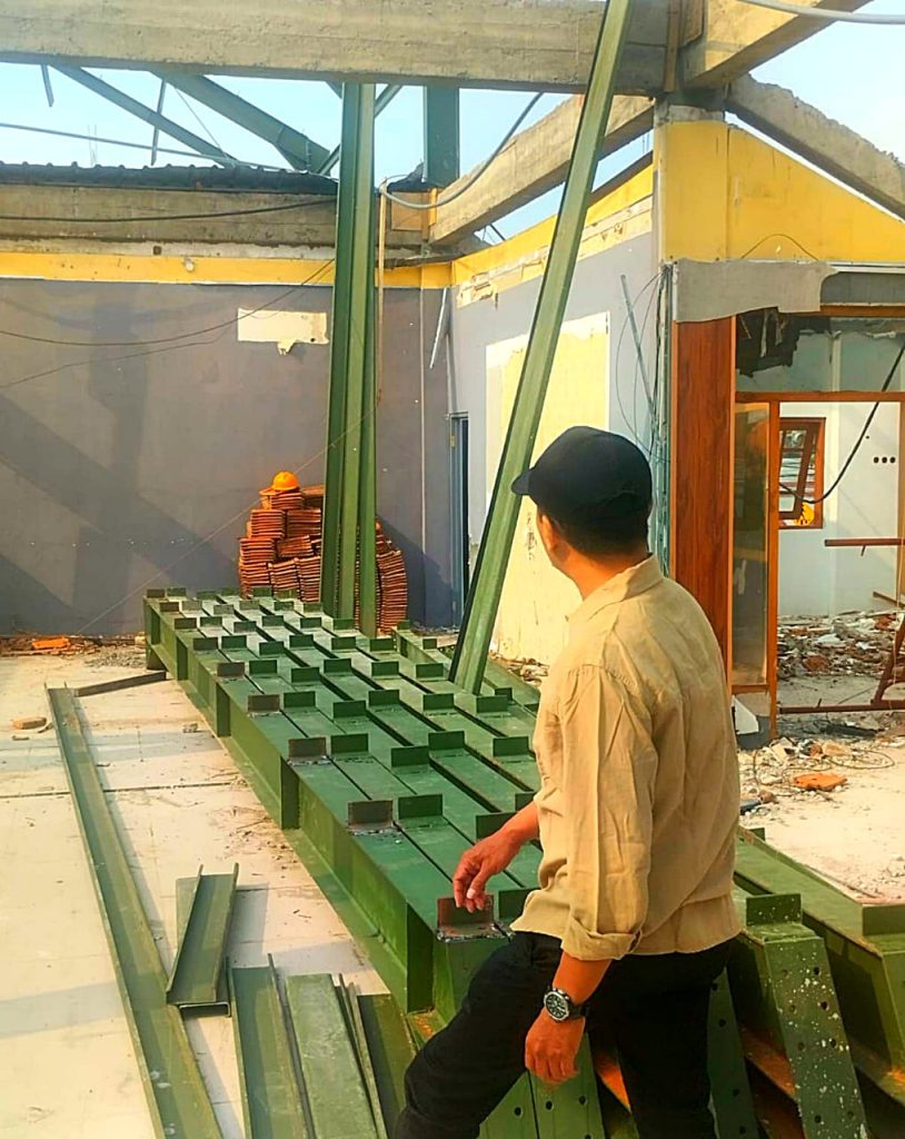 Rehab gedung BPKAD ini melakukan perbaikan pada bagian atap yang nyaris ambruk itu bakal diganti dengan atap konstruksi baja.