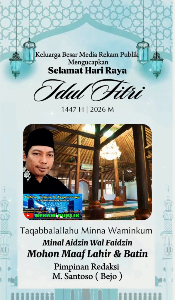 Tak lupa pula kami Tim Redaksi Rekam Publik menyampaikan Minal Aidzin Wal Faidzin Mohon maaf lahir dan batin, Semoga kita menjadi hamba yang selalu bersyukur dan selalu menjaga tali silaturrahmi dengan sesama untuk kerukunan umat Islam dan kerukunan antar anak bangsa yang selalu di Rahmati Allah Tuhan yang maha kuasa. Aamiin. ( Joko).