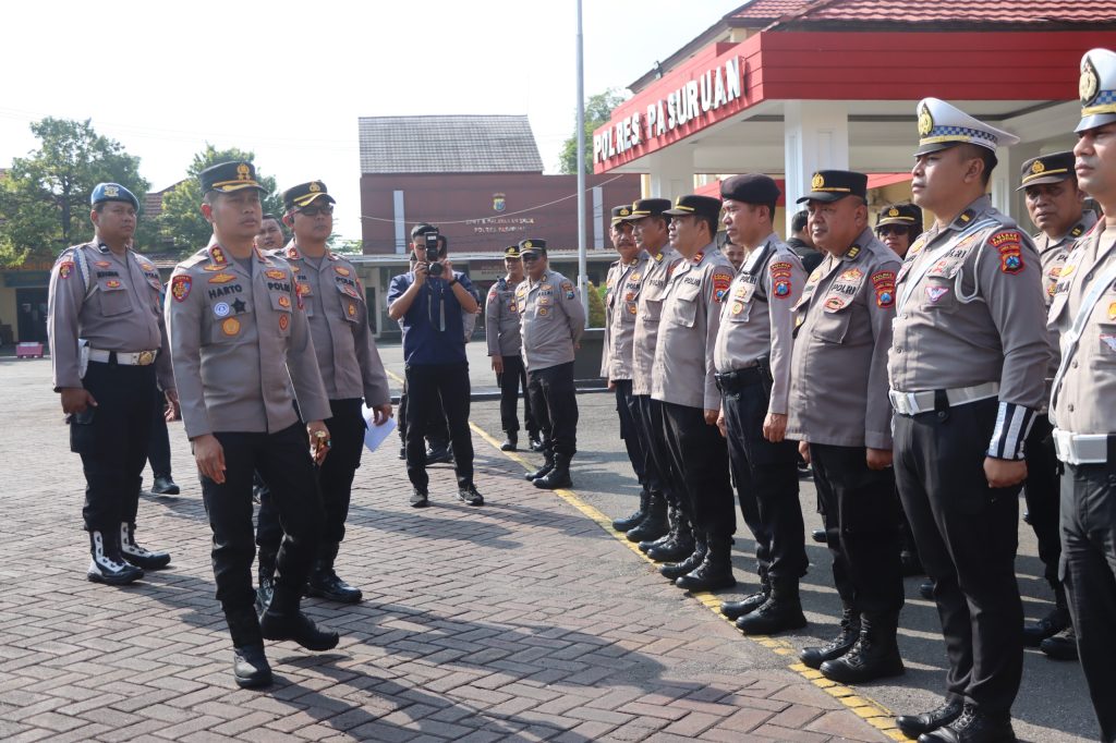 PASURUAN – Kapolres Pasuruan, Harto Agung Cahyono, memastikan kesiapan seluruh personel pasca libur Hari Raya Idul Fitri melalui pengecekan langsung yang dilaksanakan di Lapangan Sarja Arya Racana Polres Pasuruan, Kamis (2/4/2026).