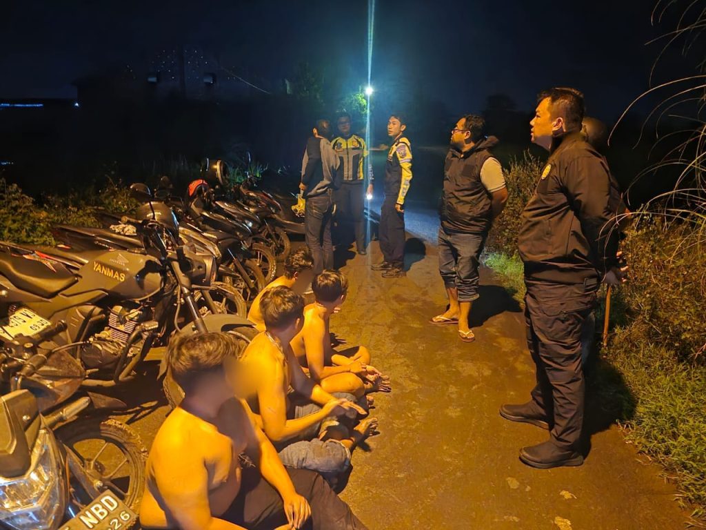 Setibanya di lokasi, petugas mendapati segerombolan remaja yang berkumpul di jalan umum pada dini hari dengan sejumlah sepeda motor. Dari hasil pemeriksaan di lapangan, petugas mengamankan barang bukti berupa belasan sepeda motor serta pecahan botol kaca yang diduga kuat akan digunakan sebagai senjata dalam aksi tawuran.