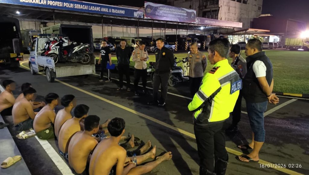 Peristiwa tersebut terjadi pada Jumat, (16/01/2026) sekitar pukul 01.15 WIB, di Jalan Bypass, Kecamatan Magersari, Kota Mojokerto. Menindaklanjuti laporan masyarakat terkait adanya segerombolan remaja yang berkumpul dan diduga hendak melakukan konvoi serta tawuran, Pleton Patroli Cipkon Polres Mojokerto Kota segera menuju lokasi.