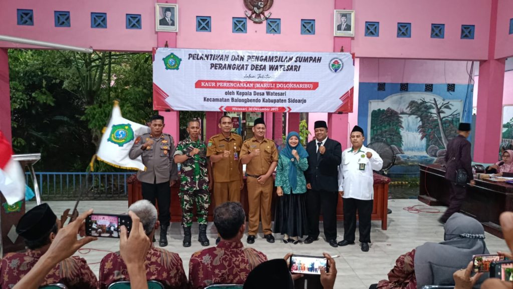 Pemerintah Desa Watesari Kecamatan Balongbendo Kabupaten Sidoarjo menggelar acara pelantikan dan pengambilan sumpah jabatan bagi perangkat desa baru pada posisi Kepala Urusan (Kaur) Perencanaan Maruli Doloksaribu, bertempat di Griyo Asmoro Balai Desa Watesari, pada hari Selasa, 30 desember 2025 pukul 16.00 wib.