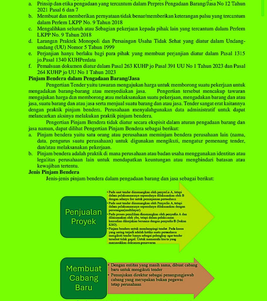 Aturan mengenai Pinjam Bendera dalam Pengadaan Barang/Jasa Pinjam bendera adalah praktik di mana perusahaan atau badan usaha menggunakan identitas