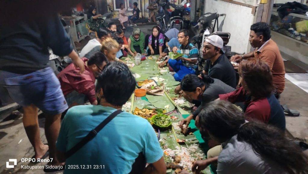Tradisi Liwetan para pemuda Diharapkan Mampu Menjadi Icon Baru Daerah kecamatan Krian para pemuda ketika Makan nasi liwet waktu berkumpul menyambut tahun Baru 2026 kepada seluruh yang hadir.(31/12/2026).